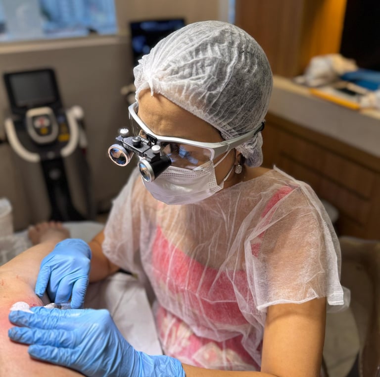 Cuidados especializados para varizes com toque delicado e eficaz.