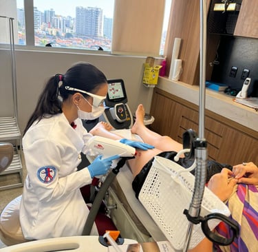 Cuidados especializados para varizes com toque delicado e eficaz.